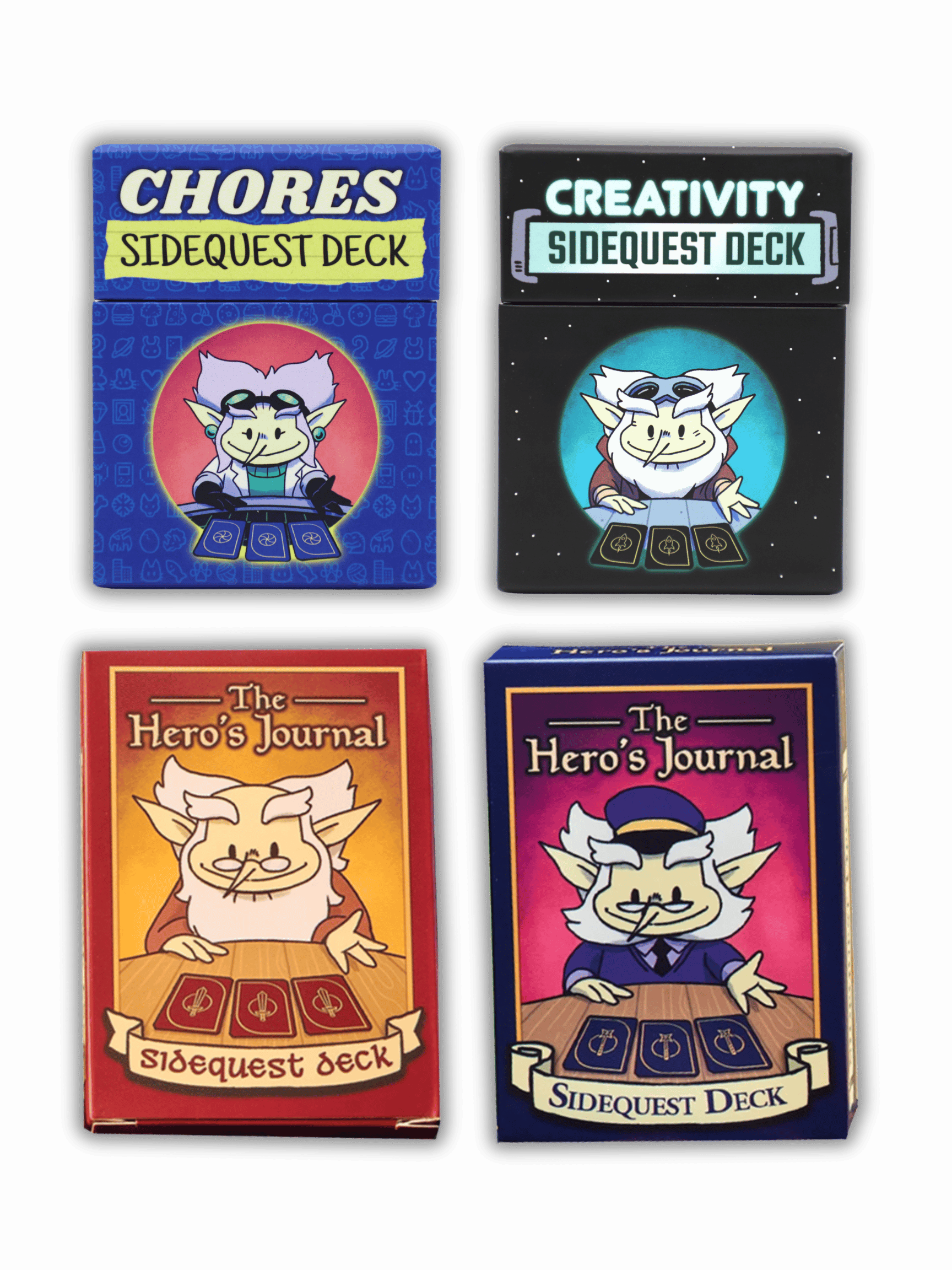 Sometimes it's easier to get a little SideQuest from an encouraging mentor than it is to come up with your own. These decks take the decision fatigue out of making good choices—just draw a card and start your quest.