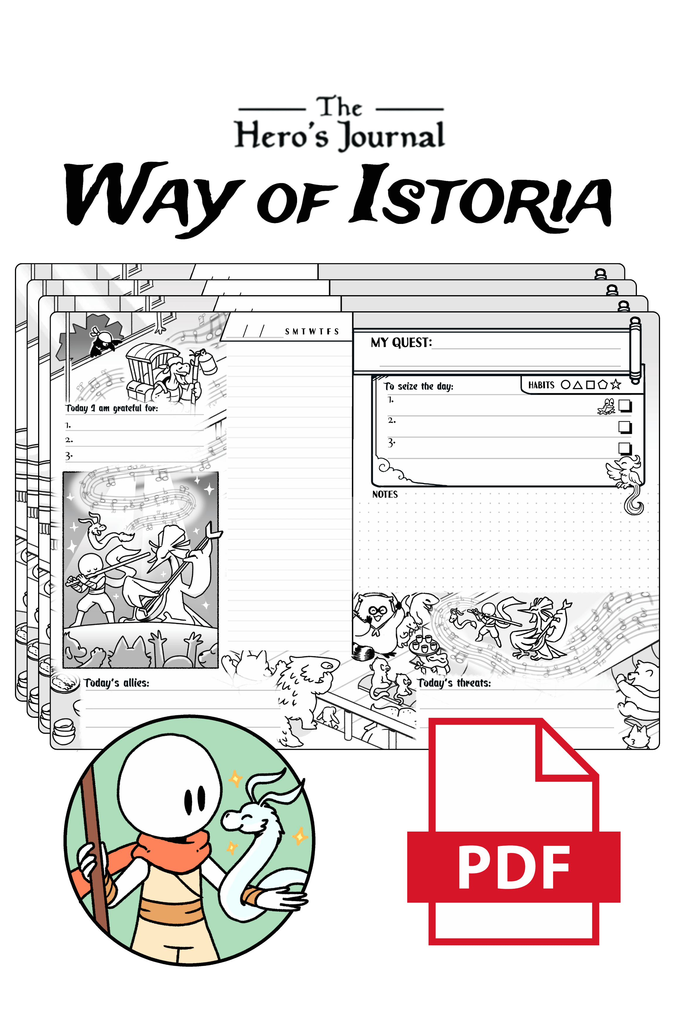 Take your quest everywhere your laptop or tablet is with a fillable PDF version of The Hero’s Journal, featuring all-new additions including journal art, updated intro content, and more.